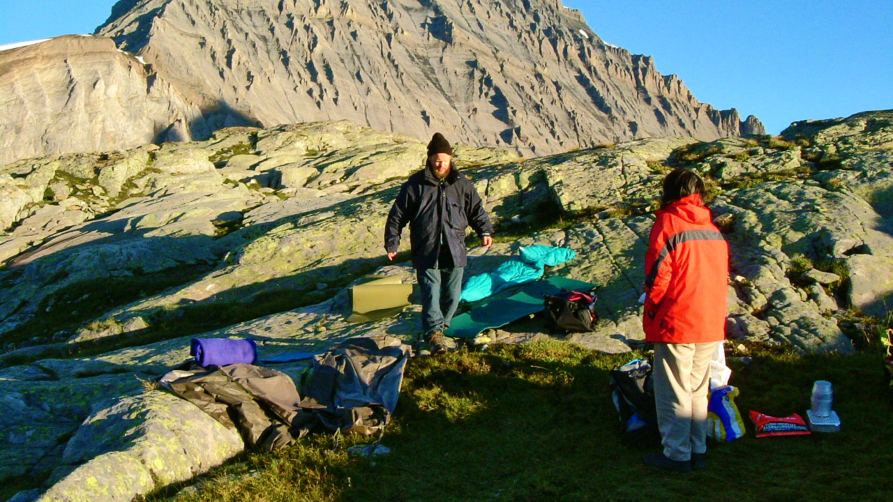 Übernachtung unter freiem Himmel auf dem Lötschenpass.