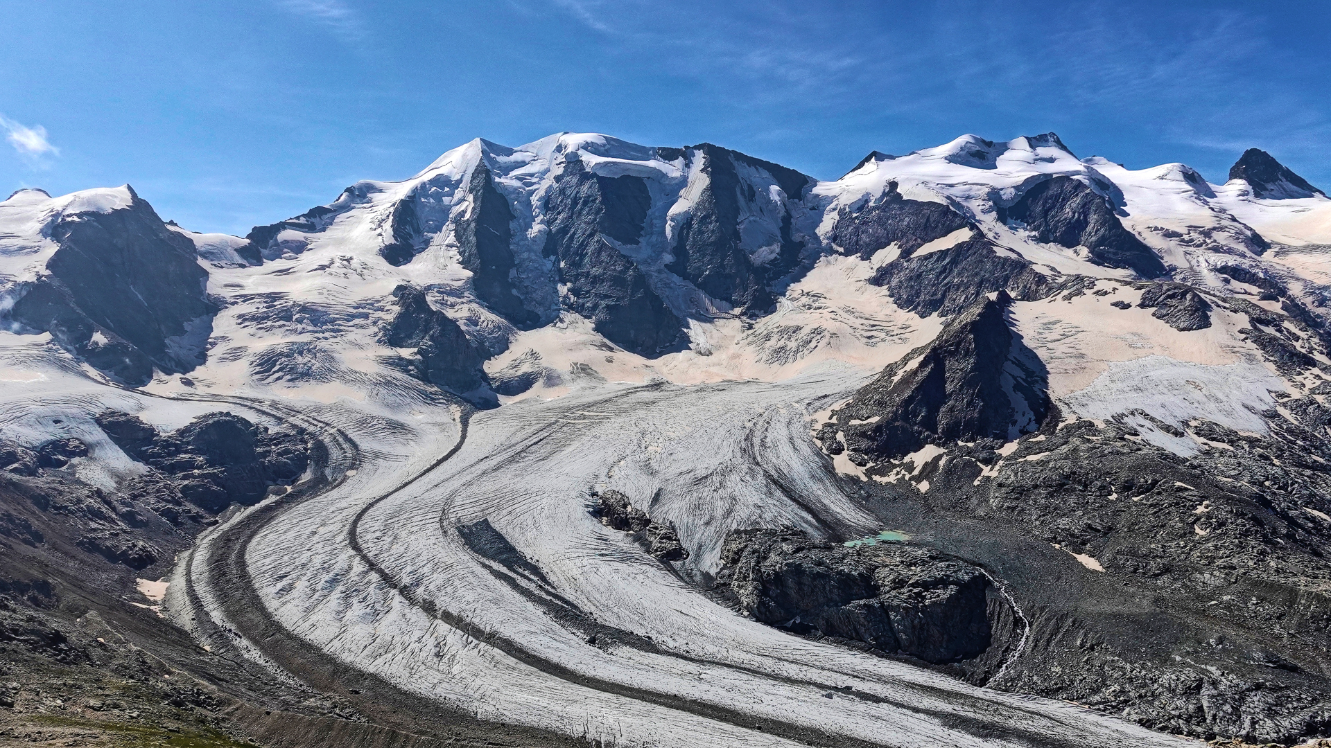 Die Wanderung auf den Munt Pers (3'206 m) bietet spektakuläre Ausblicke auf den Morteratschgletscher und das Berninamassiv.