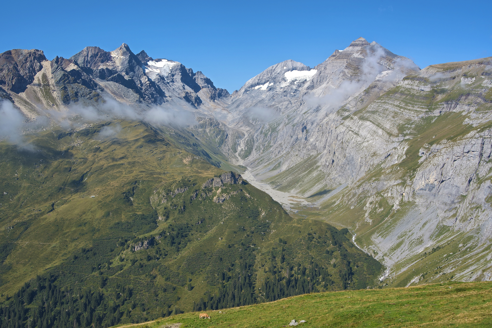 Schöne Aussichten auf Bifertenstock im Aufstieg und vom Gipfel. Der Limmerensee liegt buchstäblich unter den Füssen von Kistenstöckli. Gute Rundsicht auf Muttsee, Kistenpass und bis nach Surselva unten.