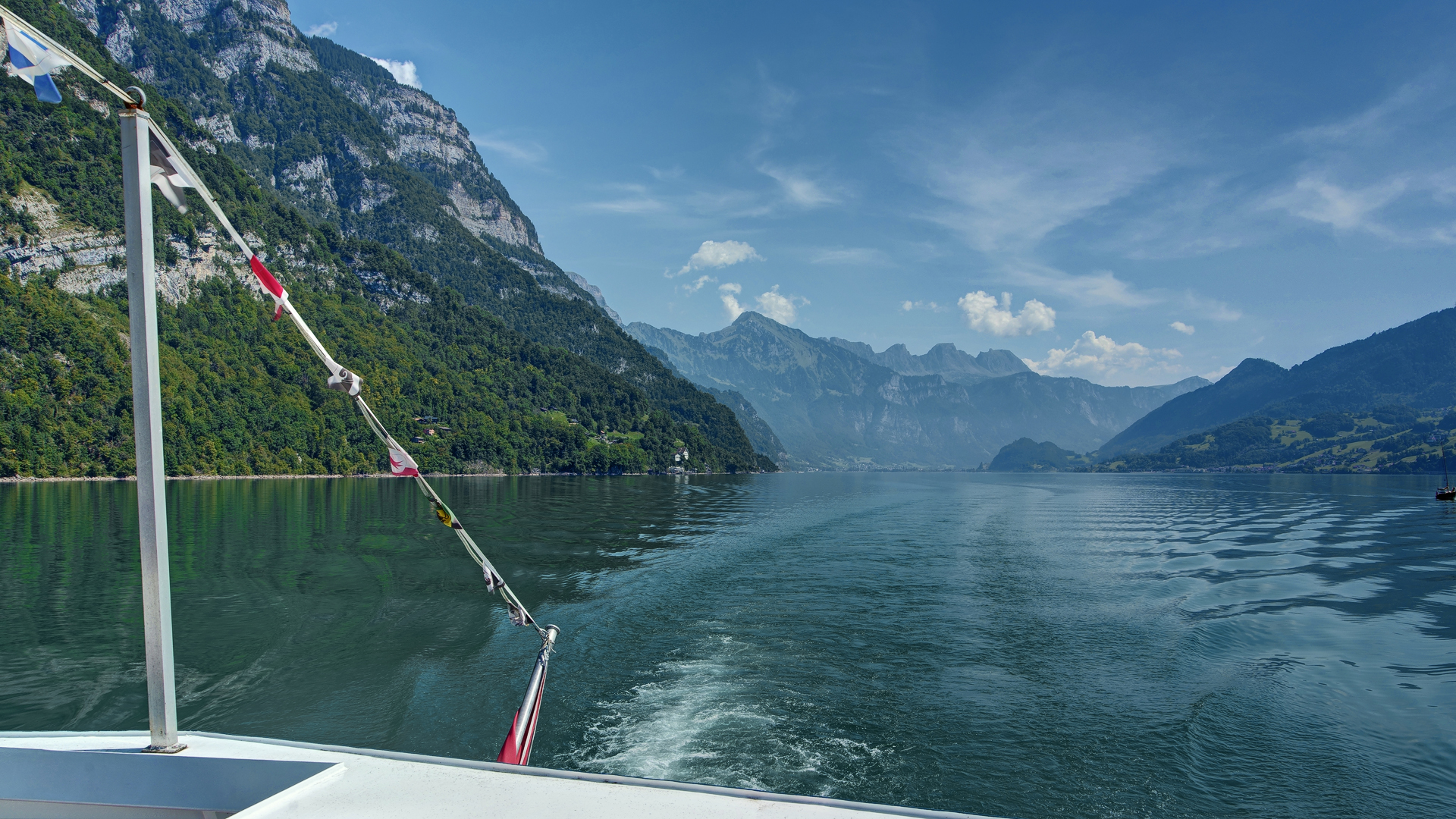 Der Weg verläuft direkt entlang des türkisfarbenen Walensees. Steile Felswände der Churfirsten ragen direkt über dem Wasser auf. Quinten gilt als wärmster Ort am Walensee, fast mediterran, und ist bekannt für Reben, Feigen, Kiwis und Kastanien. Zurück mit dem Schiff von Quinten nach Weesen.